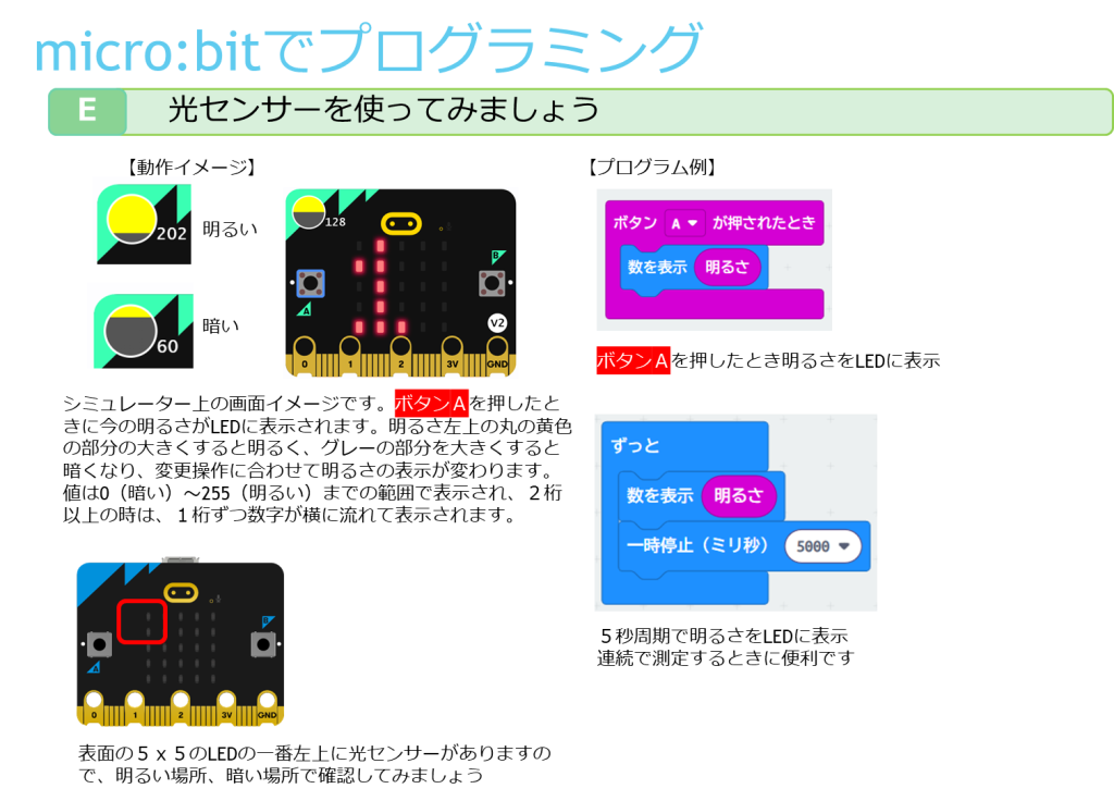 【D】温度センサーを使ってみましょう【E】光センサーを使ってみましょう